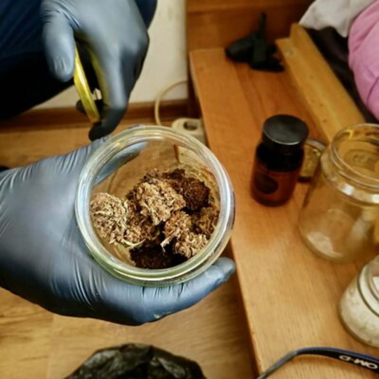 По време на разследването е установено, че Б.Х. е задържан при специализирана полицейска операция, проведена от служители на ГДБОП-Ямбол. Иззети са заготовки, материали, техника и вещи, използвани за незаконната дейност - печати, бланки, холограмни стикери, специална хартия, лаптопи и принтер. Открити са и данни за лица, поръчвали и получили неистински документи. В хода на претърсването е намерен и буркан със суха тревна маса, реагирала на марихуана. За изготвянето на неистинските документи поръчителите да плащали между 50 и 300 евро.