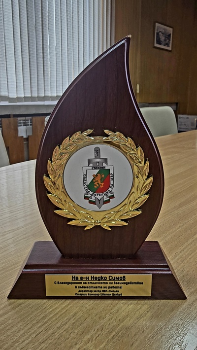 Днес, 10 ноември 2025 г., окръжният прокурор на гр. Смолян Недко Симов беше награден с почетен плакет за висок професионализъм и добро взаимодействие по повод Деня на българската полиция – 8 ноември.