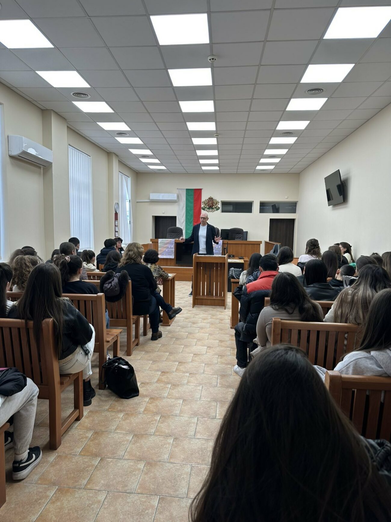 Срещата на близо 80 гимназисти с магистрата бе част от Образователната програма „Съдебната власт – информиран избор и гражданско доверие. Отворени съдилища и прокуратури“ на ВСС и се осъществи по покана на Окръжен съд – Търговище, който бе домакин на събитието.