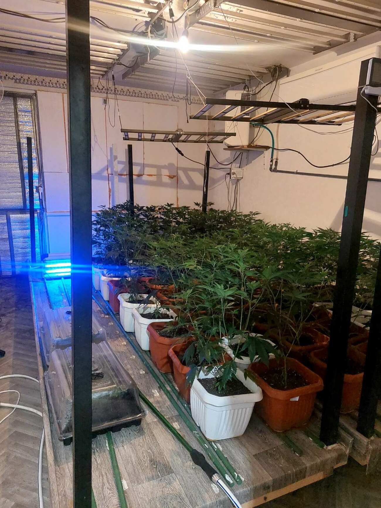 При извършените до момента действия по разследването е установено, че от края на 2025 г. до 16.03.2026 г. М.К. е засял и отглеждал 108 стръка канабис, които са били разпределени в две жилищни помещения. Едното от тях е в къща, намираща се в с. Пиргово, обл. Русе, а другото в апартамент в гр. Русе. Иззетата и готова за разпространение на наркозависими лица марихуана е общо 4 950 гр., на стойност над 50 618 евро. В жилището на М.К. са открити и незаконно притежавано оръжие – автоматичен пистолет калибър 45 АСР и 77 броя патрони.