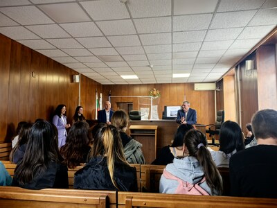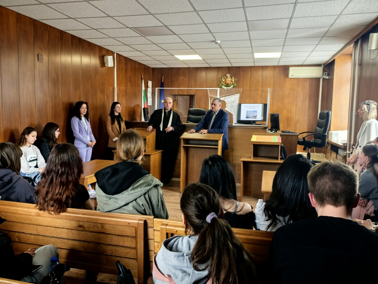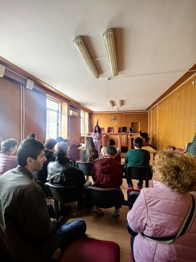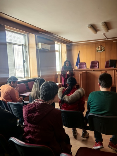 Учениците имаха възможност да посетят съдебна зала, в която им беше разяснена позицията на всяка от страните по различните видове съдебни производства. Бяха обсъдени въпроси, свързани с възможностите за защита на техните права, в случаите при които те са били засегнати. Под формата на дискусия и с примери от практиката на магистратите, бяха разяснени поставените от учениците въпроси, провокирани от интереса им към правото, справедливостта, функциите и правомощията на органите на съдебната власт. Магистратите обърнаха специално внимание на тежките последици от употребата на наркотични вещества, управлението на превозни средства след употреба на алкохол и наркотици, както и при неспазване на правилата за движение по пътищата.