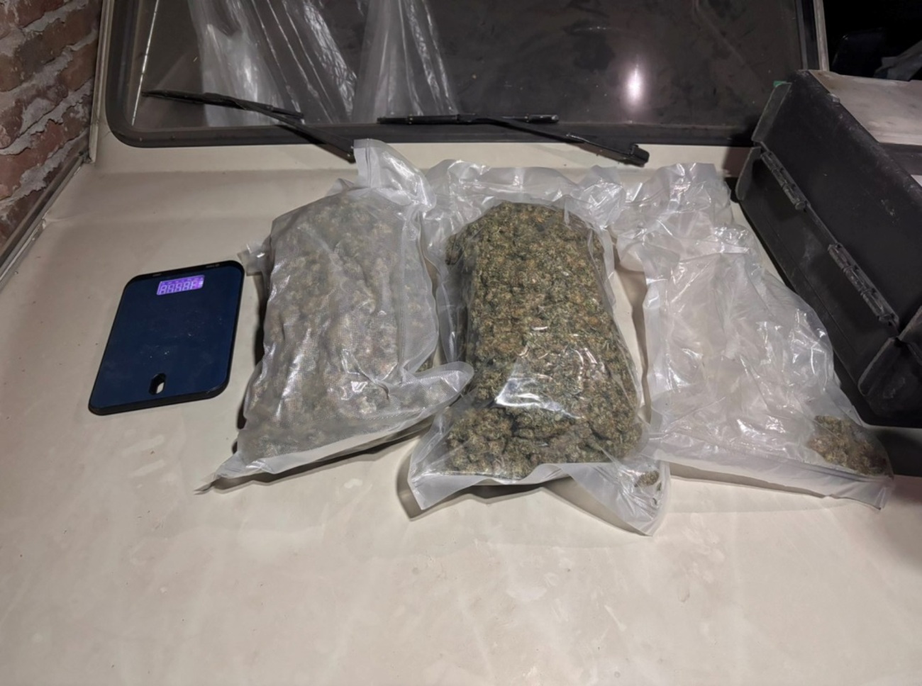 Наред с това, при извършените следствени действия от помещения, използвани от лицето са иззети н 1 018 гр. марихуана и около 196 гр. метамфетамин, опаковъчни материали, мобилни телефони, преносим компютър, DVR устройство (видеонаблюдение), около 7 000 лева в брой, както и специализирано оборудване за отглеждане на марихуана, открито в едно от гаражните помещения.