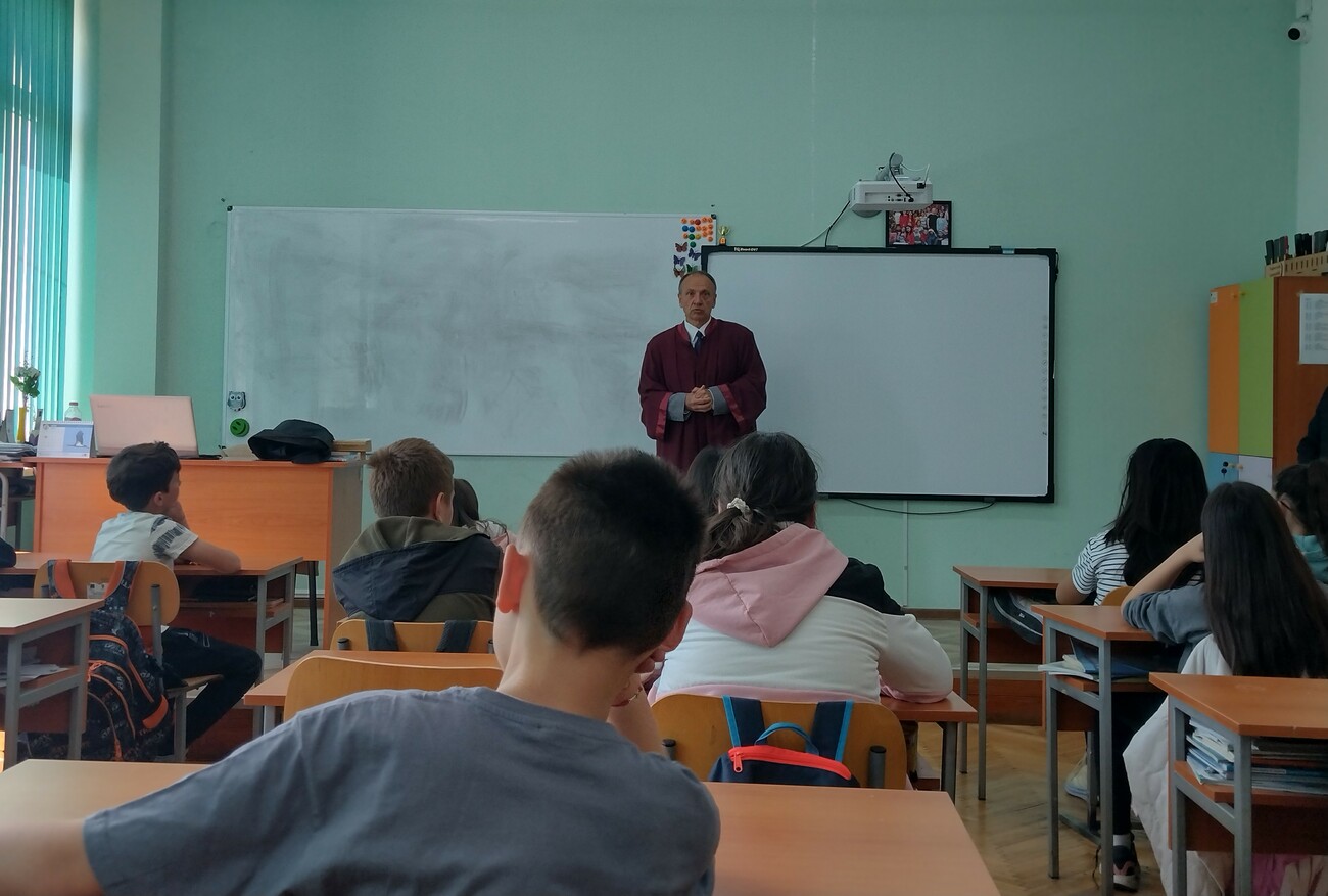 Показвайки прокурорската тога, прокурор Лещаков запозна учениците с основните функции на Прокуратурата и представи професията на прокурора, като защитник на обществения интерес, правовия ред и върховенството на закона. На достъпен за възрастта на учениците език, той обясни за спецификите и разликите между отговорностите на работещите юристи, като прокурор, съдия, адвокат, следовател и разследващ полицай и ролята на всеки от тях от разкриване на престъплението до осъждането на виновното лице.