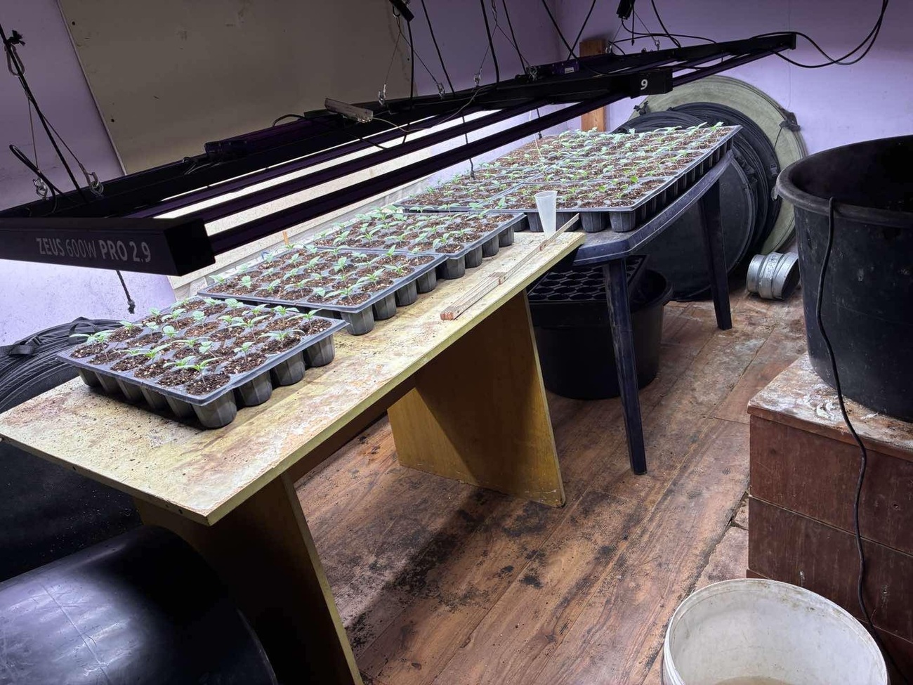 Освен това е иззето оборудване, предназначено за отглеждане на коноп - 34 осветителни диодни LED тела с трансформатори, 4 пластмасови туби, шише със семена.