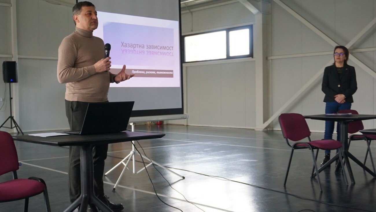 Прокурор Маринов обясни какво представлява хазартната зависимост и как се стига до развитието на психологическа и поведенческа зависимост. Бяха приведени примери как тази форма на зависимост често води до тежки личностни и социални промени, включително извършване на престъпления, провокирани от нуждата от средства – кражби, измами, наркоразпространение и други противозаконни действия. Станкова представи пред учениците основните правила утвърждаващи принципите на финансовата грамотност и с конкретни примери тя показа как натрупването на дългове, особено при сключване на договори за кредит с високи лихви и такси, може да доведе до дългосрочна финансова нестабилност и влизане в дългова спирала, от която е трудно да се излезе.