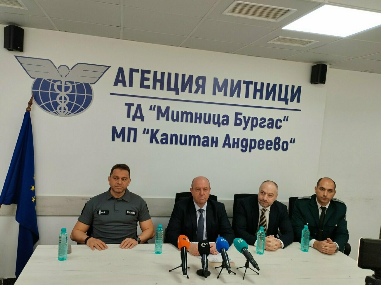 Подробности по случая бяха представени днес на съвместен брифинг на Окръжна прокуратура-Хасково, Агенция "Митници" и ГД БОП-МВР. В него участваха Иван Стоянов, окръжен прокурор на гр. Хасково, Стефан Бакалов, началник - отдел "Борба с наркотрафика" в Агенция "Митници", Емил Борисов, зам.-директор на ГД БОП - МВР, и Илиян Георчев, началник - група на ГКПП "Капитан