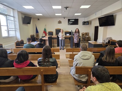 Председателят на Окръжен съд – Кюстендил, съдия Пенка Братанова информира учениците и за различните видове дела, които разглежда съдът – наказателни, граждански, търговски, фирмени, като акцентира на случайното разпределение на делата по съдии.