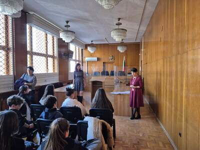 Последната спирка на гостите бе съдебната зала, в която те проведоха емоционален симулативен съдебен процес, в който всеки от тях имаше определена роля. Въпреки старанието на защитата „подсъдимият“ бе признат за виновен и получи справедливо наказание.