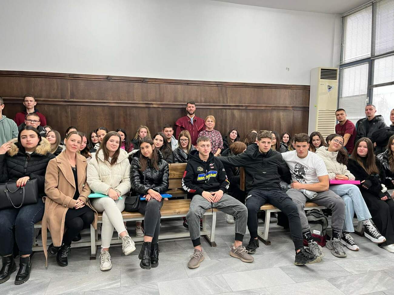 Младежите посетиха Съдебната палата и присъстваха в реално съдебно заседание по дело за шофиране на лек автомобил след употреба на наркотични вещества. Наблюдаваха от първо лице как са организирани дейностите в съдебната зала по време на реално съдебно заседание и какви са действията на всеки един от присъстващите в него.