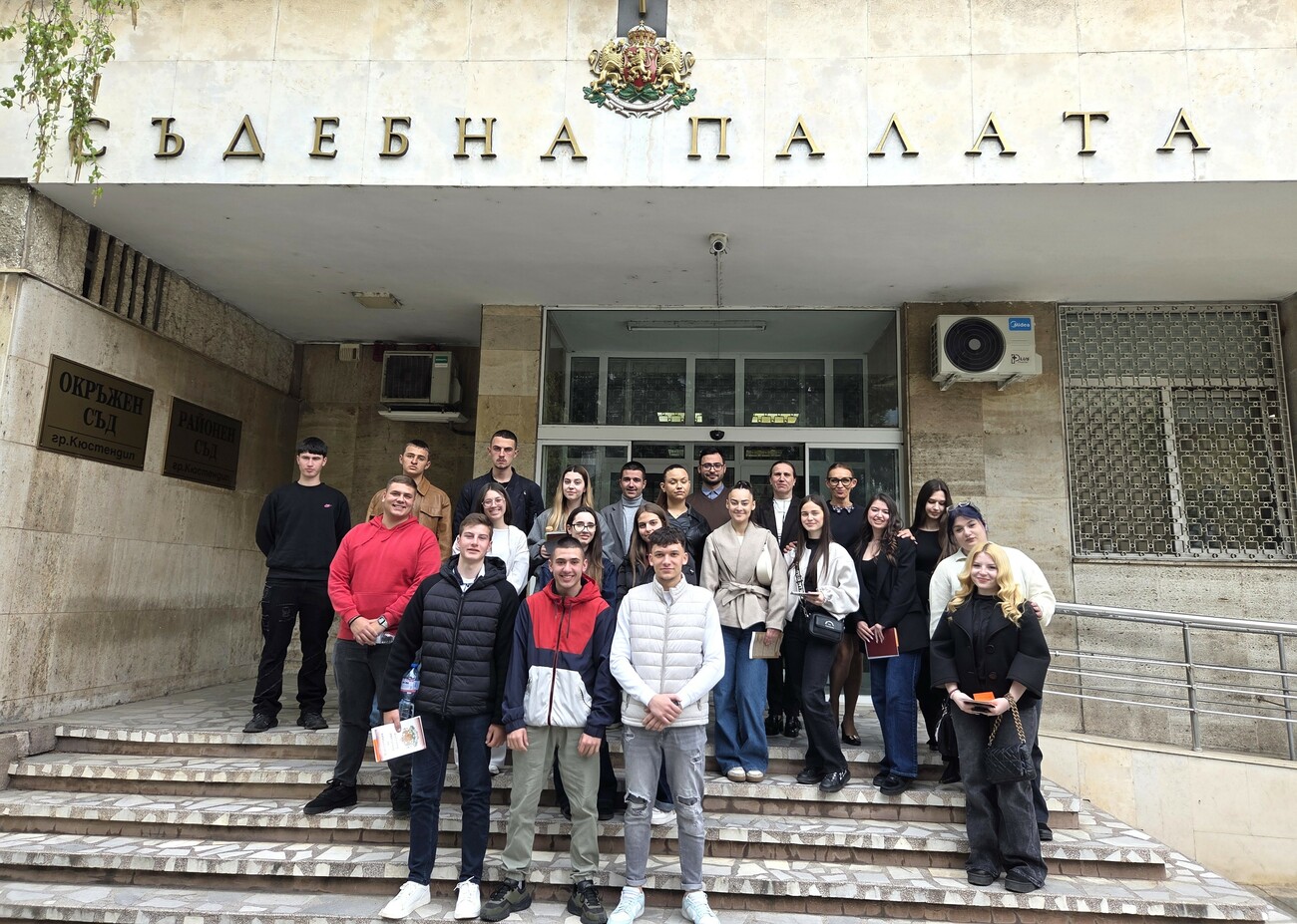 Гости в Съдебната палата бяха ученици от Езикова гимназия „Д-р Петър Берон“ в гр. Кюстендил. Те имаха възможност да видят отблизо работата на съдебната система, като бяха посрещнати в съдебна зала от районния прокурор Албена Разсолкова, съдия Мая Миленкова от Наказателното отделение и съдия Кристиян Стоилов от Гражданското отделение на Районен съд - Кюстендил.